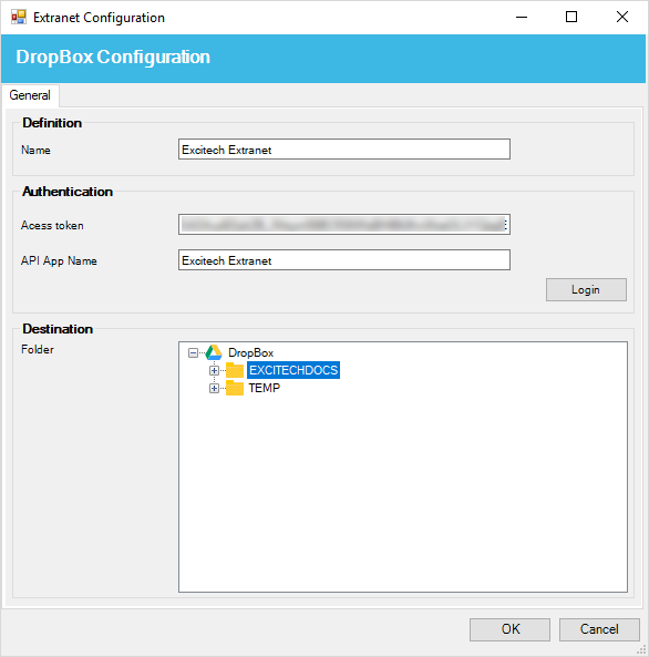Enter your Dropbox Access Token, then click the 'Login' button. If you do not have your Dropbox Access Token, details on how to generate these can be found in the Dropbox API Integration topic.