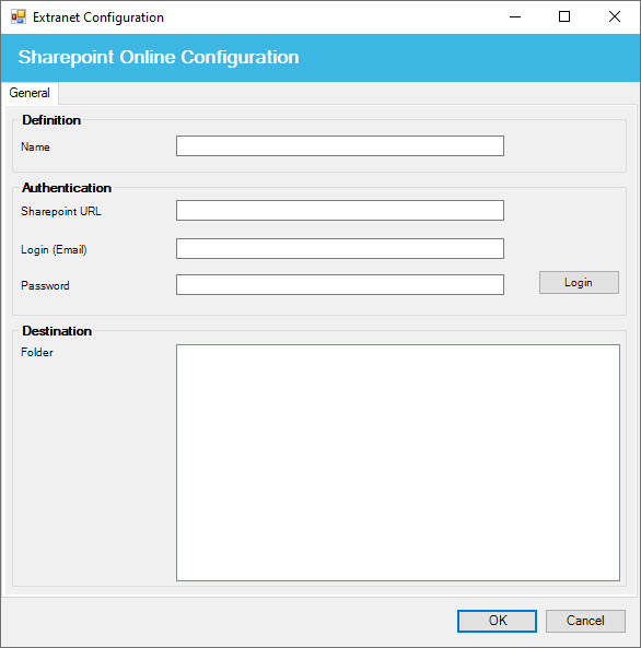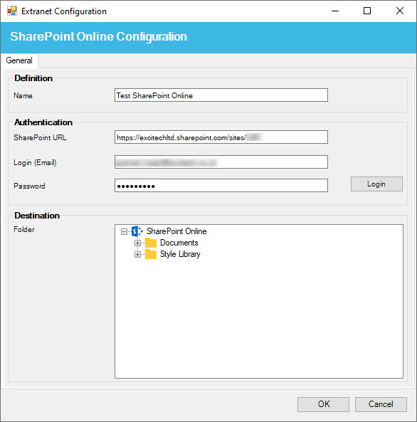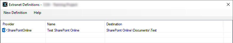 To configure an SharePoint Online extranet definition, add an 'SharePoint Online' definition to a project as detailed in the parent topic.