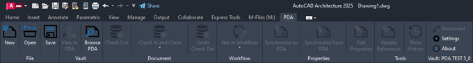 When using PentagonDocs Assistant with AutoCAD for the first time you will need to select the vault you wish to work with. The ribbon will initially show Not Configured