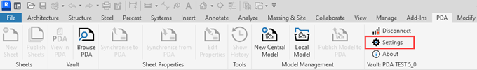 Click ‘About’ to see the version of the add-in and its status (‘Connected’ indicates that you are connected to the vault and have a PDA Revit add-in license assigned to your user via the PentagonDocs Assistant Admin Utility):