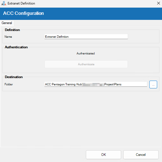 To configure a BIM 360 Docs / Autodesk Construction Cloud (ACC) Extranet definition: