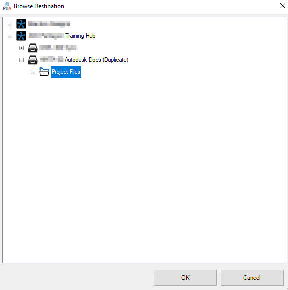 This displays the 'Browse Destination' dialogue box and allows you to navigate the structure in BIM 360 Docs/ACC.