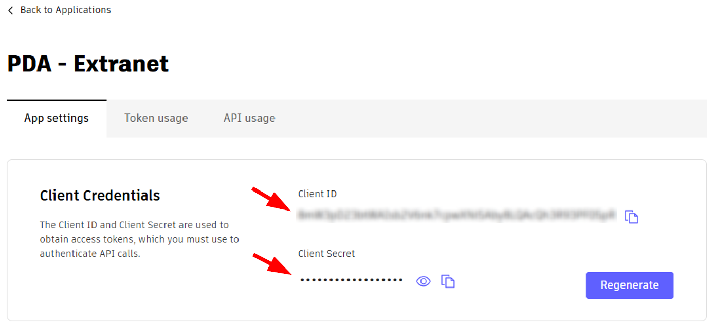 Once the application is created, please take note of the Client ID and Client Secret. This is the data the Extranet Uploader uses to identify itself to Autodesk.