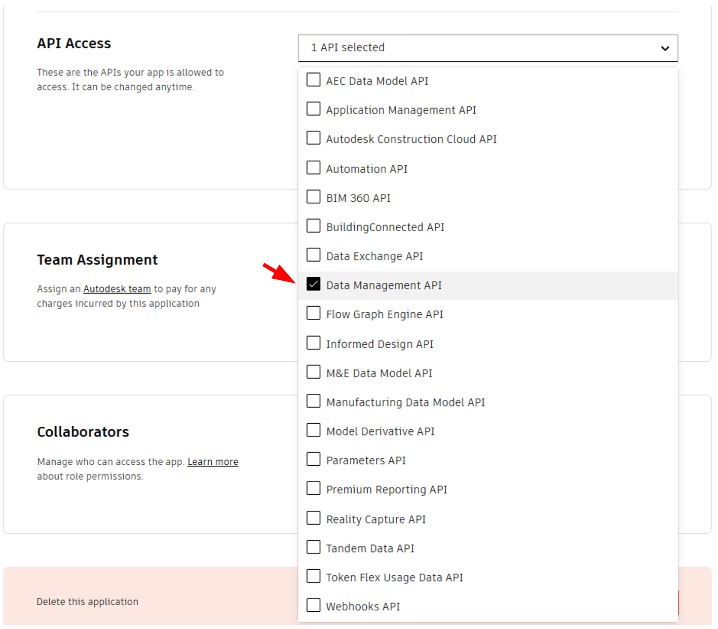 Under the 'API Access' section, please deselect everything except for 'Data Management API' and click 'Save Changes'