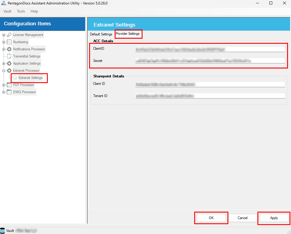 Launch the PentagonDocs Assistant Admin Utility and connect to the appropriate vault.