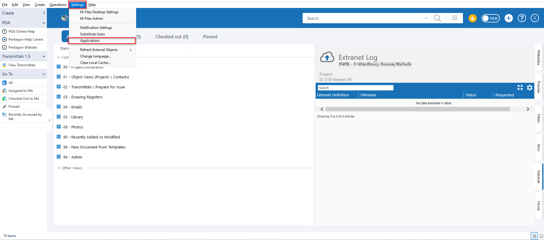 To verify if clients have the application, launch M-Files Desktop and press the 'alt' key on your keyboard. Then using the top menu, go to Settings\ Applications.