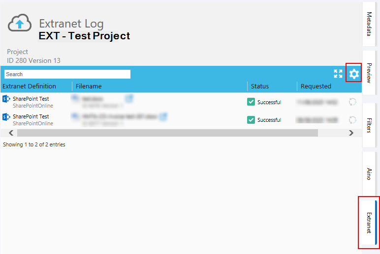 To create a new extranet definition, select a project object and then select the Extranet tab. On the Extranet pane, select the gear icon to 'Configure Extranet Definitions'.