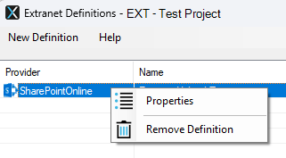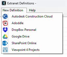 Extranet definitions are configurations used to allow the upload of files to a supported provider. Extranet definitions are defined per project, allowing each project to have multiple definitions to multiple providers. More than one definition for each provider can be created per project, this is useful if you want to upload to different locations within the target extranet site.
