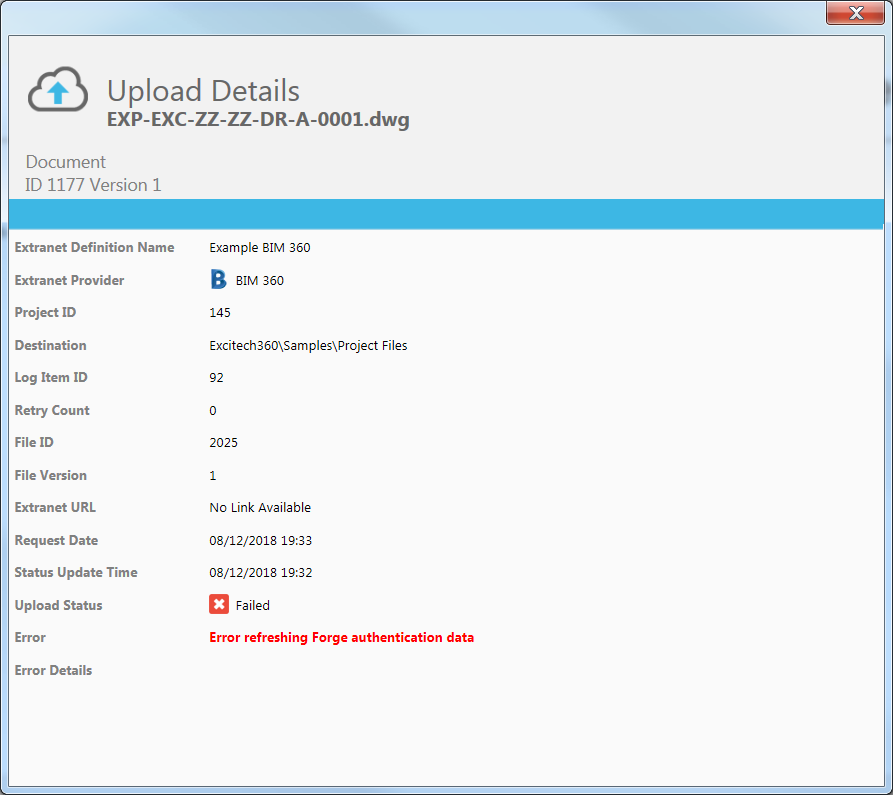 Upload Status, Error and Error Details are useful when diagnosing upload failures.