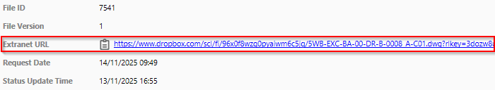 Where supported External URL links to the uploaded files are provided. Clicking on the link opens a browser window with the external link.