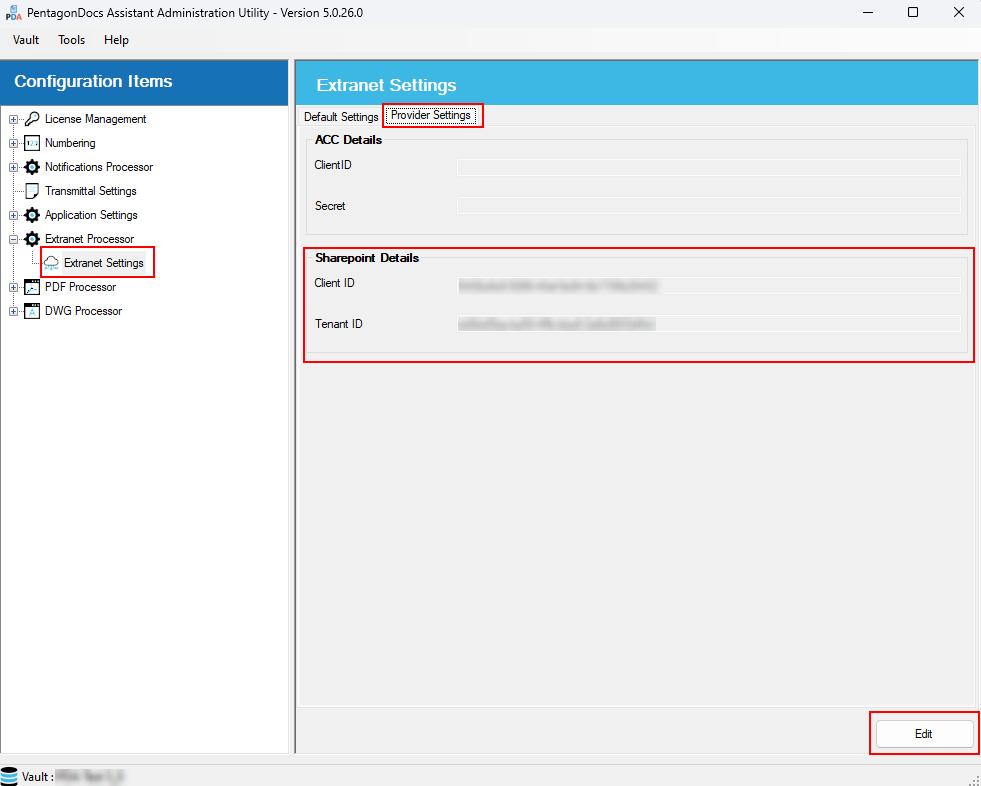 Launch the PentagonDocs Assistant Admin Utility and connect to the appropriate vault.