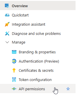 Once the App is registered, the Overview page is shown. Navigate to 'API Permissions' and choose 'Add a permission'.
