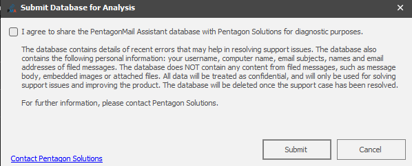 If you encounter repeatable problems, our technical support team may ask you to submit your database for analysis. The information is only used for diagnostic purposes and is deleted once the support case is resolved.