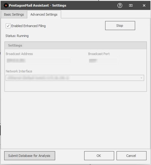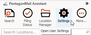The Settings dialogue is available both from the PentagonMail Assistant side menu in Outlook: