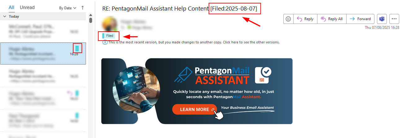 With this feature, the original e-mail is filed on its own, ensuring it is untouched.