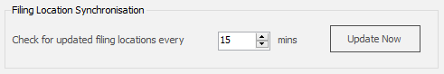 By default, updates to the filing locations are checked and synchronised every 15 (fifteen) minutes.